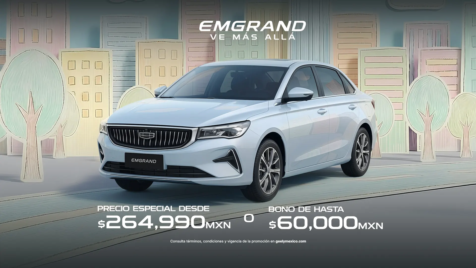 El precio de $264,990 MXN aplica al utilizar el Bono dragón con el plan de crédito simple, únicamente a través de Geely Financial Services (BBVA México S.A., Institución de Banca Múltiple), para el modelo Emgrand 2026 en su versión GC, sobre un precio de $299,990 MXN El Nuevo Bono a precio de $35,000 MXN (IVA Incluido, no aplica seguro por un año gratis, y no es acumulable con otras promociones.